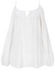 Com caimento reto, possui abertura nos ombros, mangas bispo e detalhe aberto no decote.