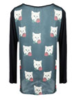Com detalhe frontal em hotfix e estampa posterior de gatos.