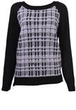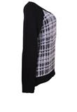 Possui mangas longas e estampa na parte fa frente e zíper na lateral da barra direita