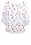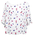 Possui decote canoa e estampa de gatos.Ombro: 6cm/ Manga: 35cm/ Busto: 110cm/ Comprimento: 56cm