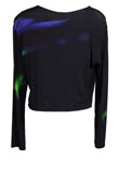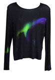 Possui gola redonda, estampa de aurora boreal e barra mullet.Ombro: 15cm/ Manga: 65cm/ Busto: 116cm/ Comprimento: 63cm