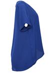Possui barra mullet, prega nas costas e decote V.Ombro: 9cm/ Manga: 21cm/ Busto: 104cm/ Comprimento: 76cm