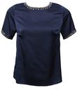 Em cetim, possui aplicação de pedrarias no decote e mangas e fechamento posterior por botão.Ombro: 8cm/ Manga: 22cm/ Busto: 94cm/ Comprimento: 59cm