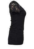 Possui detalhes em renda nas costas e mangas.Ombro: 6,5cm/ Manga: 13cm/ Busto: 70cm/ Comprimento: 64cm