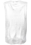 Possui decote redondo e acabamento metalizado.Ombro: 11cm/ Busto: 104cm/ Comprimento: 68cm