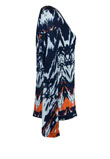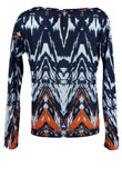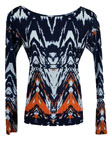 Possui decote canoa e estampa abstrata.Ombro: 8cm/ Ombro a ombro: 44cm/ Manga: 65cm/ Busto: 108cm/ Comprimento: 61cm