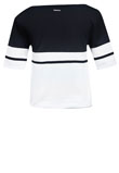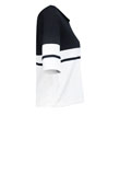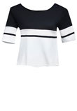Possui decote redondo e recortes contrastantes.Ombro: 8cm/ Manga: 23cm/ Busto: 84cm/ Comprimento: 50cm