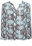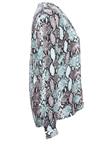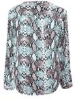 Possui decote em V, animal print e fechamento em botões. Ombro: 16cm/ Manga: 66cm/ Busto: 124cm/ Comprimento: 74cm