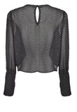 Fecho posterior por botão. Ombro: 10cm/ Manga: 65cm/ Busto: 98cm/ Comprimento: 48cm