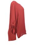 Possui manga longa e tecido levemente transparente.