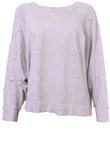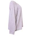 Possui apliques de pérolas nas mangas, manga longa e caimento oversized