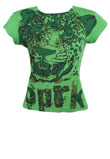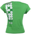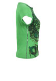 Possui gola redonda, estampa frontal e posterior e detalhe lateral em paetês.Ombro: 12cm/ Manga: 8cm/ Busto: 92cm/ Comprimento: 50cm