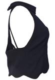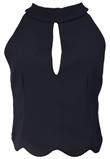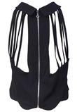 Possui fechamento em zíper e detalhes em tiras nas costas.