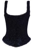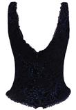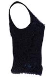 Possui detalhe em pedras na barra e fechamento em zíper.