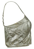 Possui acabamento metalizado e fecho em zíper.