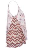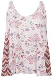 Regata em malha com estampa floral, possui recorte em tule com estampa etnica.Ombro: 3cm/ Busto: 134cm/ Comprimento: 66cm