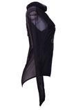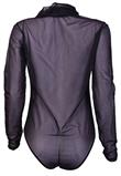 Possui manga longa, golar alta e transparência.