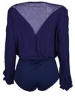 Possui recortes com transparência e fecho por colchetes na entrepernas. Ombro: 11cm/ Manga: 70cm/ Busto: 110cm/ Comprimento: 78cm
