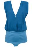 Possui recorte no busto e fecho em colchetes na entrepernas. Ombro: 10cm/ Busto: 90cm/ Comprimento: 74cm
