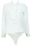 Fechamento por botão entrepernas. Ombro: 10cm/ Manga: 64cm/ Busto: 108cm/ Comprimento: 78cm