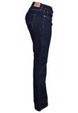Possui bolsos laterais, traseiros, fechamento por zíper e botão.