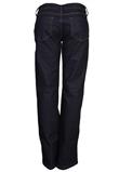 Possui bolsos laterais, traseiros, fechamento por zíper e botão.