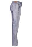 Possui bolsos laterais, traseiros, fechamento por zíper e botão.