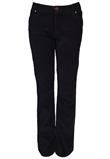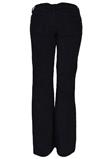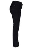 Possui bolsos laterais, traseiros, fechamento por zíper e botão.