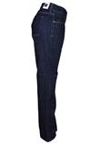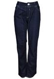 Possui detalhes de brilho na costura, bolsos laterais, traseiros, fechamento por zíper e botão.