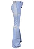 Possui fechamento em zíper, botão, bolsos e detalhes bordado