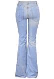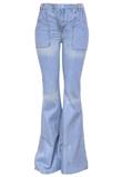 Possui fechamento em zíper, botão, bolsos e detalhes bordado.