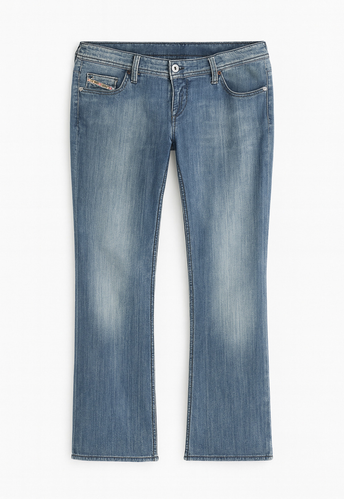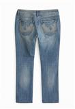 Possui bordados nos bolsos traseiros e cintura baixa