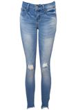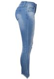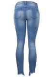 Confeccionada em jeans com elastano, possui bolsos dianteiros e traseiros, barras assimétricas desfiadas e fechamento por zíper e botão.Cintura: 64cm/ Quadril: 84cm/ Gancho: 22cm/ Comprimento: 97cm