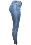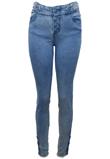 Confeccionada em jeans com elastano, possui barra desfiada com botões nas laterais, bolsos dianteiros e traseiros e fechamento por botões.Cintura: 66cm/ Quadril: 80cm/ Gancho: 27cm/ Comprimento: 102cm