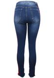 Confeccionada em jeans com elastano, possui detalhe em veludo nas laterais, bolsos dianteiros e traseiros e fechamento por zíper e botão.Cintura: 70cm/ Quadril: 86cm/ Gancho: 26cm/ Comprimento: 100cm