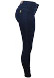 Confeccionada em jeans com elastano, possui bolsos traseiros e fechamento por zíper e botão.Cintura: 74cm/ Quadril: 94cm/ Gancho: 24cm/ Comprimento: 103cm