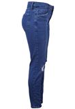 Possui modelagem skinny e detalhes destroyed nos joelhos
