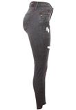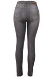 Confeccionada em sarja com elastano, possui bolsos dianteiros e traseiros, barras desfiadas e fechamento por zíper e botão.Cintura: 67cm/ Quadril: 89cm/ Gancho: 25cm/ Comprimento: 102cm