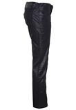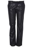 Possui fechamento em zíper, botão e detalhe em fivela.