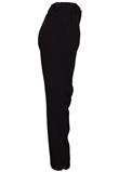 Possui bolsos, elástico na cintura e fechamento por zíper e botão.