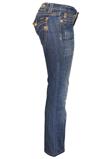 Possui fechamento em zíper e botão, detalhe de Strass nos bolsos.