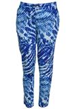 Possui bolsos laterais, traseiros, fechamento por zíper e botão.