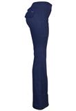 Possui o tecido mais encorpado, com bolsos laterais com costuras, bolsos falsos atrás.