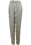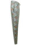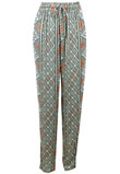 Possui cós elástico com ajuste em amarração, bolsos e estampa geométrica.