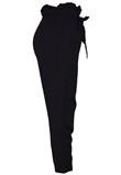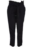 Possui elástico na cintura e cinto no mesmo tecido e cor.