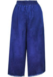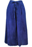 Cós elástico na parte posterior, fecho em amarração, detalhe desfiado na barra, possui bolos frontais.