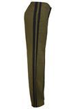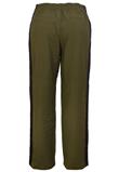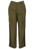 Possui fechamento em zíper, botão, bolso e zíper na barra.