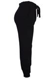 Possui modelagem jogger e faixas fixas para amarrar na cintura