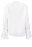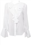 Possui gola vitoriana com tira para amarração, babados, manga flare e fechamento por botões.Ombro: 12cm/ Manga: 66cm/ Busto: 108cm/ Comprimento: 64cm