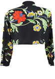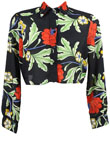 Possui fecho em botões, leve transparência e comprimento cropped.